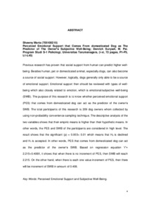 Maria, Shawny (2014) Perceived Emotional Support Yang Berasal Dari Anjing Peliharaan Sebagai Prediktor Dari Subjective Well-Being Pemiliknya. Skripsi thesis, Universitas Tarumanagara.