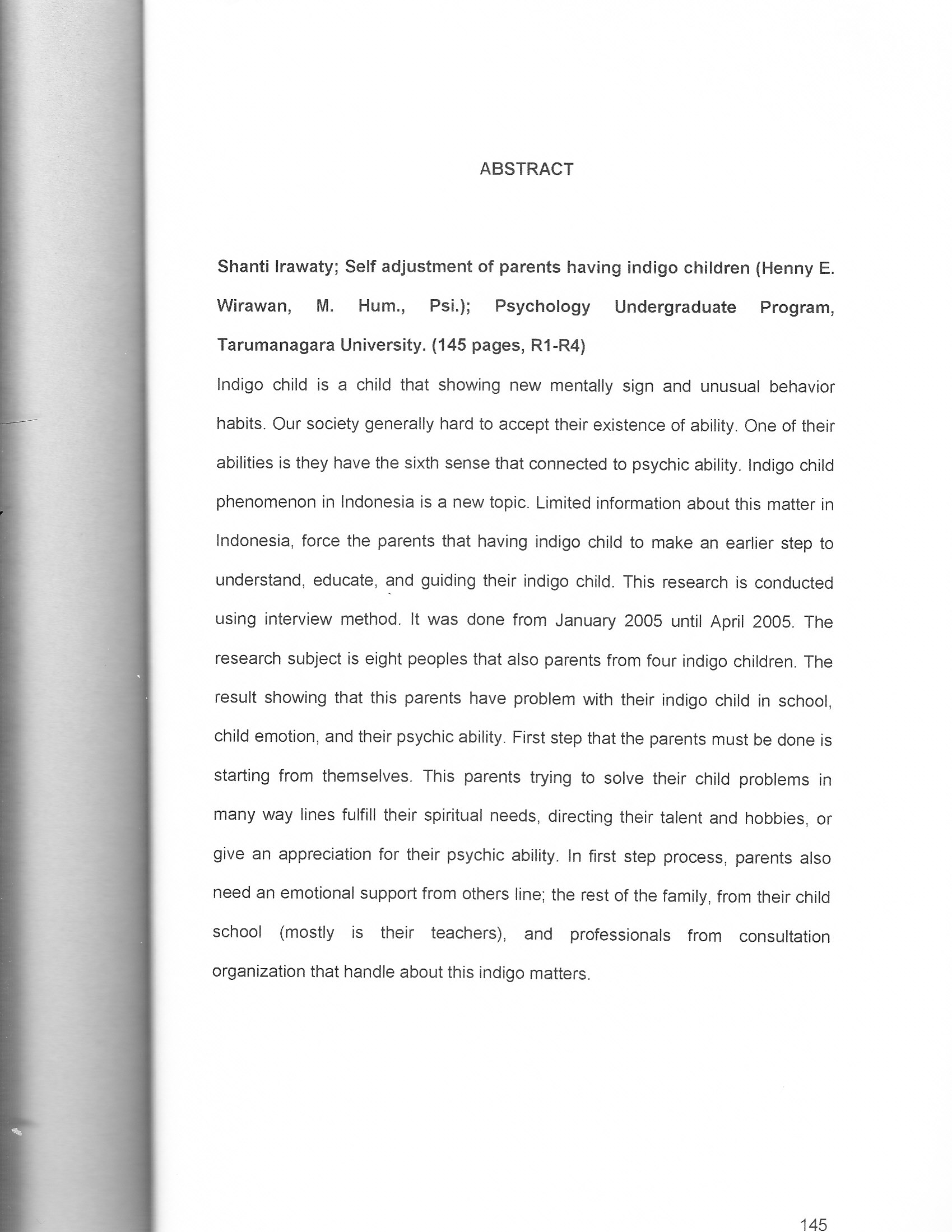Irawaty, Shanti (2005) Penyesuaian Diri Orangtua Yang Memiliki Anak Indigo. Skripsi thesis, Universitas Tarumanagara.