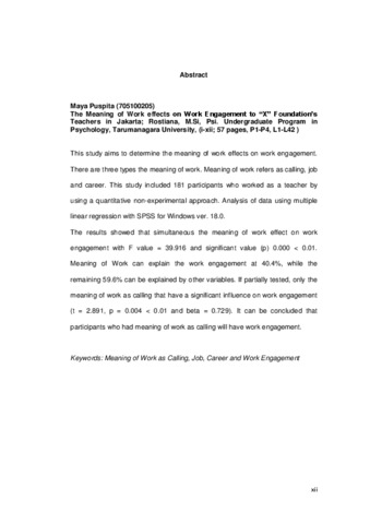 Puspita, Maya (2014) Pengaruh Makna Kerja Terhadap Keterikatan Kerja Pada Guru Yayasan X di Jakarta. Skripsi thesis, Universitas Tarumanagara.