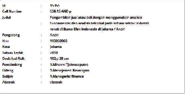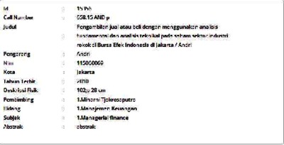 Andri, Andri (2010) Pengambilan Jual atau Beli dengan Menggunakan Analisis Fundamental dan Analisis Teknikal pada Saham Sektor Industri Rokok di Bursa Efek Indonesia di Jakarta. Skripsi thesis, Universitas Tarumanagara.
