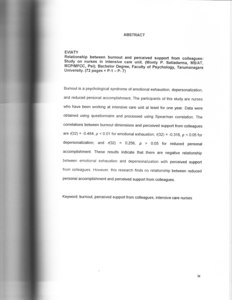 Eviaty, Eviaty (2005) Gejala Burnout Dan Persepsi Dukungan Rekan Sekerja Pada Perawat Unit Perawatan Intensif. Skripsi thesis, Universitas Tarumanagara.