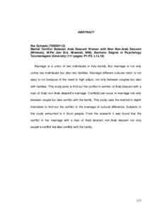 Suhaela, Nur (2009) Gambaran Konflik Pernikahan Pada Wanita Keturunan Arab Dengan Pria Non Keturunan Arab. Skripsi thesis, Universitas Tarumanagara.