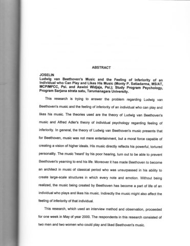 Joselin, Joselin (2000) Musik Ludwig Van Beethoven dan perasaan inferioritas individu yang bias memainkan dan menyukai musiknya. Skripsi thesis, Universitas Tarumanagara.