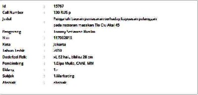 Ruslim, Tommy Setiawan (2010) Pengaruh bauran pemasaran terhadap kepuasan pelanggan pada restoran masakan Tio Ciu Akai 45. Masters thesis, Universitas Tarumanagara.