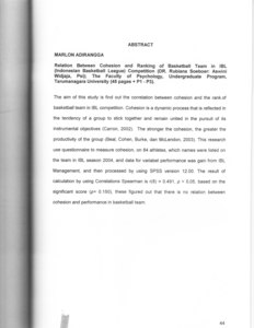 Adirangga, Marlon (2005) Hubungan kohesi dan peringkat tim bola basket yang mengikuti kompetensi IBL (Indonesia Basketball League). Skripsi thesis, universitas Tarumanagara.