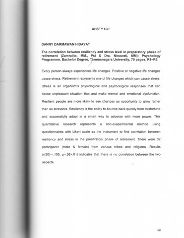 Darmawan, Danny (2005) Hubungan antara resiliensi dan tingkat stress pada masa persiapan pensiun. Skripsi thesis, universitas Tarumanagara.