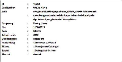 Diana, Henny (2010) Pengaruh dividend payout ratio, return, assets turnover dan suku bunga terhadap indeks harga saham individual pada tiga industri yang berbeda. Skripsi thesis, Universitas Tarumanagara.