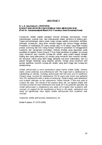 Dwita, N. L. K. Ayu Ratna (2010) Konsep Diri Artistik (Studi Pada Remaja Yang Menekuni Bidang Seni). Masters thesis, Universitas Tarumanagara.