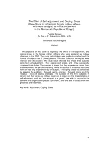 This objective of this study is to portray the effort of self-adjustment, and coping stress in the female military officers who were assigned as military observers in the DRC. The study methodology was qualitative method and the number of subjects are 3 (three) persons. The data collection techniques were interview and observation. The study result showed that those three subjects performed self-adjustment, they experienced stress, and they successfully completed their duties. The sources of stress that they experienced came from the environment, the job and the family. While the source of the stress that came from self was only experienced by one subject. The coping stress was conducted by applying the problem - focused coping, emotion - focused coping and the religious - focused coping strategies. The success of the three subjects in carrying out their duties as military observers is drawn on the characteristics of self-adjustment such as: “are accepted in a group”, “are able to respond to the demands that organization places upon them”, and “are able to accept their own greatness and weakness.