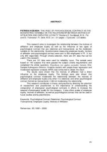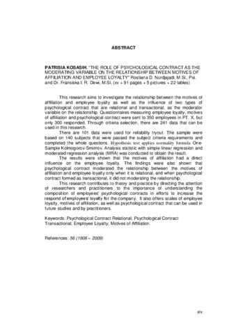 The results were shown that the motives of affiliation had a direct influence on the employee loyalty. The findings were also shown that psychological contract moderated the relationship between the motives of affiliation and employee loyalty only when it is relational, and when psychological contract formed as transactional, it did not moderating the relationship.