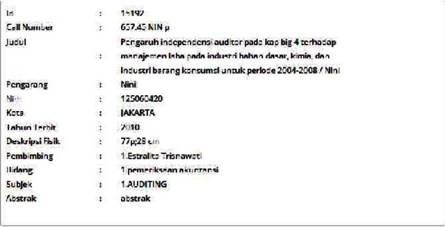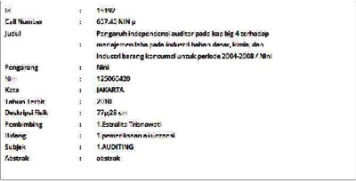 Nini, Nini (2010) Pengaruh independensi auditor pada kap big 4 terhadap manajemen laba pada industri bahan dasar, kimia, dan industri barang konsumsi untuk periode 2004-2008. Skripsi thesis, Universitas Tarumanagara.