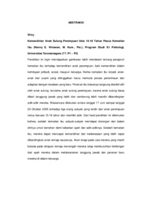 Winy, Winy (2006) Kemadirian anak sulung perempuan usia 15-18 tahun pasca kematian ibu. Skripsi thesis, Universitas Tarumanagara.