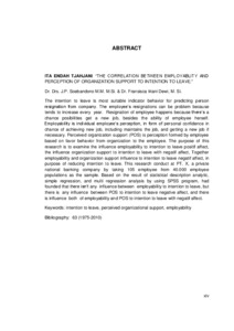 Tjahjani, Ita Endah (2011) Pengaruh employability dan persepsi pada dukungan organisasi terhadap niat untuk mengundurkan diri. Masters thesis, Universitas Tarumanagara.
