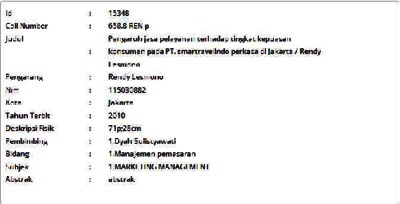 Lesmono, Rendy (2010) Pengaruh jasa pelayanan terhadap tingkat kepuasan konsumen pada PT. smartravelindo perkasa di Jakarta. Skripsi thesis, Universitas Tarumanagara.