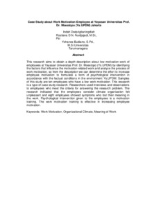 Dwiprigitaningdiah, Indah (2012) Studi kasus motivasi kerja karyawan kantor Yayasan Universitas Prof. DR. Moetopo Jakarta. Masters thesis, Universitas Tarumanagara.
