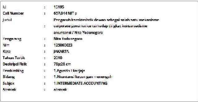Yudonegoro, Nita (2010) Pengaruh karakteristik dewan sebagai salah satu mekanisme corporate governance terhadap tingkat konservatisme akuntansi. Skripsi thesis, Universitas Tarumanagara.