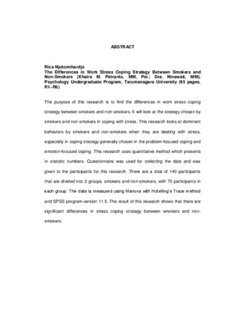 Njotomihardjo, Rica (2006) Perbedaan pemilihan strategi coping stress kerja pada perokok dan bukan perokok. Skripsi thesis, Universitas Tarumanagara.