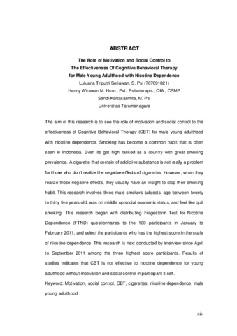 Setiawan, Luluana Triputri (2012) Pengaruh motivasi dan social control terhadap efektivitas cognitive behavioral therapy dalam mengatasi ketergantungan rokok pada pria dewasa muda. Masters thesis, Universitas Tarumanagara.