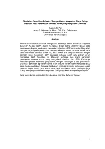 Suzanti, Suzanti (2012) Efektivitas Cognitive Behavior Therapy dalam mengatasi Binge Eating Disorder pada perempuan dewasa muda yang mengalami obesitas. Masters thesis, Universitas Tarumanagara.
