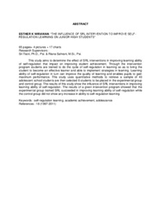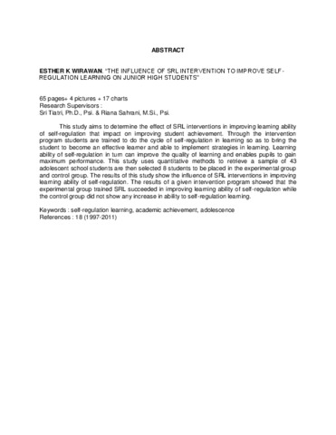 K. Wirawan, Esther (2012) Pengaruh intervensi SRL dalam meningkatkan kemampuan self regulated learning pada siswa SMP. Masters thesis, Universitas Tarumanagara.