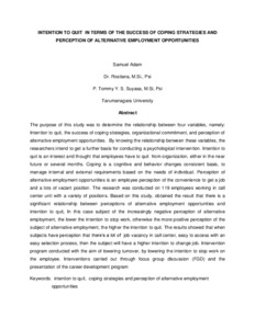 | Uncontrolled Keywords: | "intention to quit, coping strategies and perception of alternative employment opportunities " |