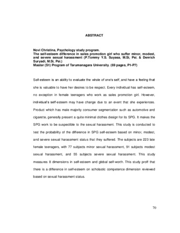 Christina, Novi (2006) Perbedaan self-esteem sales promotion girl yang mengalami pelecehan seksual ringan, sedang, dan berat. Skripsi thesis, Universitas Tarumanagara.