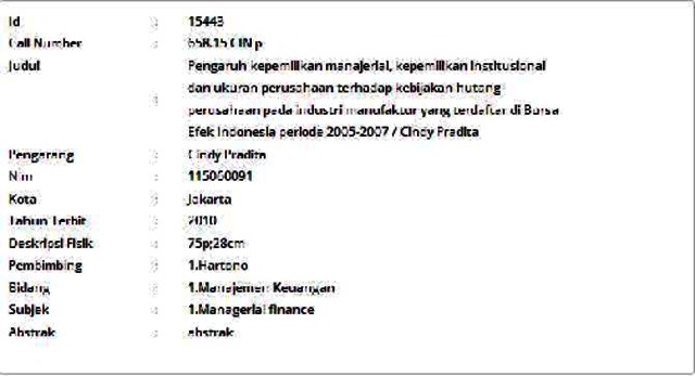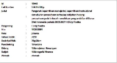 Pradita, Cindy (2010) Pengaruh kepemilikan manajerial, kepemilikan institusional dan ukuran perusahaan terhadap kebijakan hutang perusahaan pada industri manufaktur yang terdaftar di Bursa Efek Indonesia periode 2005-2007. Skripsi thesis, Universitas Tarumanagara.