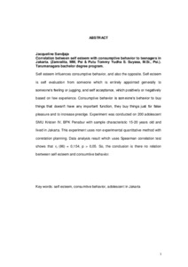 Self esteem influences consumptive behavior, and also the opposite. Self esteem is self evaluation from someone which is entirely appointed generally to someone’s feeling or jugging, and self acceptance, which positively or negatively based on few experience. Consumptive behavior is someone’s behavior to buy things that doesn’t have any important function, they buy things just for false pleasure and to increase prestige. Experiment was conducted on 200 adolescent SMU Kristen IV, BPK Penabur with sample characteristic 15-20 years old and lived in Jakarta. This experiment uses non experimental quantitative method with correlation planning. Data analysis result which uses Spearman correlation test shows that rs (86) = 0,154, p > 0,05. So, the conclusion is there no relation bertween self esteem and consumtive behavior.
