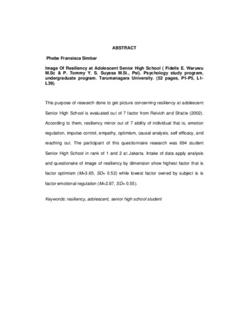 Fransisca, Phebe (2008) Gambaran resiliensi pada remaja SMU. Studi deskriptif pada SMU peringkat 1 dan 2 se DKI Jakarta. Skripsi thesis, Universitas Tarumanagara.