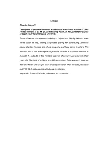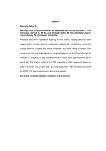 T, Chandra Cahya (2007) Gambaran perilaku prososial pada dewasa muda dan dewasa menengah penghuni rumah susun X. Skripsi thesis, Universitas Tarumanagara.