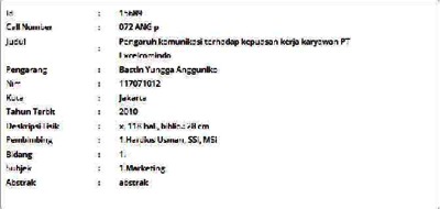 Angguniko, Bastin Yungga (2010) Pengaruh komunikasi terhadap kepuasan kerja karyawan PT Excelcomindo. Masters thesis, Universitas Tarumanagara.