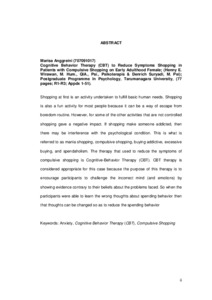 | Uncontrolled Keywords: | Anxiety, Cognitive Behavior Therapy (CBT), Compulsive Shopping |