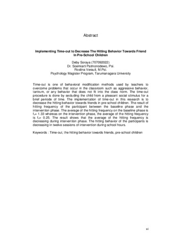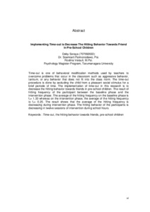 Soraya, Deby (2013) Penerapan time-out dalam mengurangi perilaku memukul teman pada anak usia pra sekolah. Masters thesis, Universitas Tarumanagara.