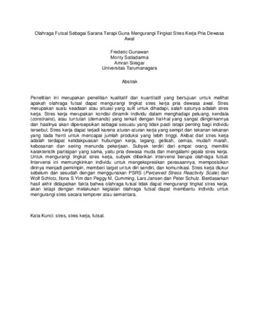 Gunawan, Frederic (2015) futsal sebagai terapi guna menurunkan tingkat stres kerja pada pria dewasa awal. Masters thesis, Universitas Tarumanagara.
