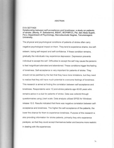 S., Eva (2001) Hubungan antara penerimaan diri dengan kesepian pasca stroke berat. Skripsi thesis, Universitas Tarumanagara.