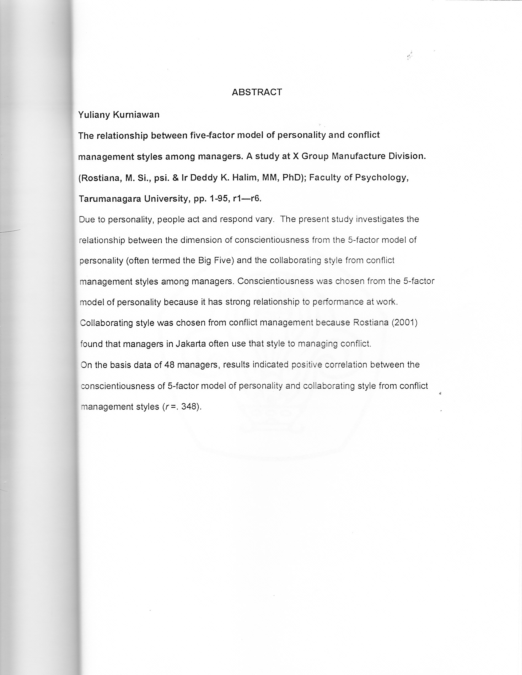 Kurniawan, Yuliani (2002) Hubungan antara kepribadian model conscientious ness dan gaya menangani konflik collaborating pada manajer (Suatu studi pada group inferential perusahaan X divisi manufaktur). Skripsi thesis, Universitas Tarumanagara.