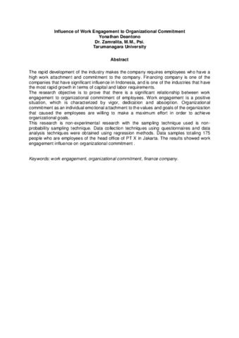 Deantono, Yonanthan (2016) Peran work engagement terhadap komitment organisasi. Masters thesis, Universitas Tarumanagara.