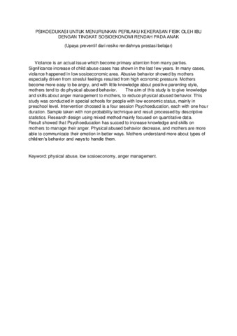 PSIKOEDUKASI UNTUK MENURUNKAN PERILAKU KEKERASAN FISIK OLEH IBU DENGAN TINGKAT SOSIOEKONOMI RENDAH PADA ANAK.pdf Download (50kB) | Preview |