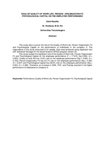 Raudha, Esha (2016) Peran kualitas kehidupan kerja person-organizational fit, psychological capital terhadap kinerja karyawan. Masters thesis, Universitas Tarumanagara.
