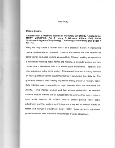 Basaria, Debora (2002) Penyesuaian diri perempuan yang bekerja sebagai pekerja seks komersial (PSK) dalam kehidupan sehari-hari. Skripsi thesis, Universitas Tarumanagara.