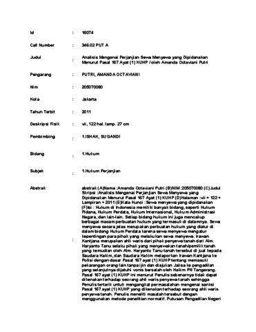AMANDA OCTAVIANI, PUTRI (2011) Analisis Mengenai Perjanjian Sewa Menyewa yang Dipidanakan Menurut Pasal 167 Ayat (1) KUHP / oleh Amanda Octaviani Putri. Skripsi thesis, UNIVERSITAS TARUMANAGARA.