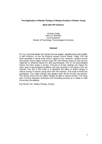 HIV is a virus that attack the human immune system, depleting the body’s ability to fight infection, so that the infection causes chronic illness. Today, HIV has been spreaded to whole world without regard to sex. However, research shows that women have a higher chance to get HIV. HIV infection does not only have an impacted on physical impact but also psychological. One of the psychological factors that often arises is anxiety. Uncured of anxiety feelings can impact the other area of psychological problems and also psysical of the person who are infected. The aim of this study is to detemine the effect of reality therapy to reduce anxiety in women young adult with HIV infection. This study involved two partisipants. The reality therapy was applied within 60-90 minutes per session. The results shows that the reality therapy be able to reduce anxiety. This study also involving relaxation technique and counseling process as a media to relief the anxiety immediately.