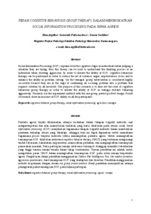 Social Information Processing (S.I.P.) explains how the cognitive stages in individuals when judging a situation they are facing, thus this theory can be used to understand the thinking process of an individual when showing aggression. In order to elevate the ability of S.I.P., cognitive behaviour therapy can be performed in order to reduce the act of violence, anger, impulsiveness, focus and to enhance the ability in problem solving. On the teenager, group intervention is considered highly successful because they are in the stage of confirming an occuring problem into a problem that requires solution by all involved. The purpose of this research is to find out the roles of cognitive behaviour group therapy in order to elevate the ability of S.I.P. in teenage students behaving aggresively. Research use the experiment method with the one group pretest-posttest design. Result of research show an increase of S.I.P. ability on all the participants.