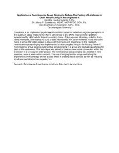 | Uncontrolled Keywords: | " Reminiscence Group Singing, Loneliness, Older Adult, Nursing Home. " |