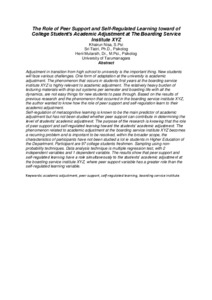 Adjustment in transition from high school to university is the important thing. New students will face various challenges. One form of adaptation at the university is academic adjustment. The phenomenon that occurs in students first years at the boarding service institute XYZ is highly relevant to academic adjustment. The relatively heavy burden of lecturing materials with drop out systems per semester and boarding life with all the dynamics, are not easy things for new students to pass through. Based on the results of previous research and the phenomenon that occurred in the boarding service institute XYZ, the author wanted to know how the role of peer support and self-regulation learn to their academic adjustment. Self-regulation of metacognitive learning is known to be the main predictor of academic adjustment but has not been studied whether peer support can contribute in determining the level of students’ academic adjustment. The purpose of the research is knowing that the role of peer support and self-regulated learning toward the students’ academic adjustment. The phenomenon related to academic adjustment at the boarding service institute XYZ becomes a recurring problem and is important to be resolved, within the broader scope, the characteristics of participants have not been studied a lot ie students in Higher Education of the Department. Participant are 97 college students freshmen. Sampling using non-probability techniques. Data analysis technique is multiple regression test, with 2 independent variables and 1 dependent variable. The results show that peer support and selfregulated learning have a role simultaneously to the students’ academic adjustment at the boarding service institute XYZ, where peer support variable has a greater role than the self-regulated learning variable.