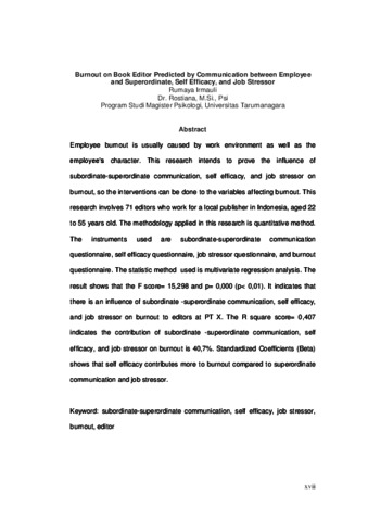 Irmauli, Rumaya (2014) Burnout pada editor buku ditinjau dari komunikasi bawahan, self efficacy, dan job stressor. Masters thesis, Universitas Tarumanagara.