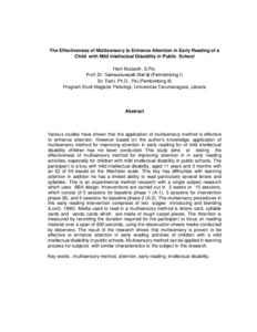 Mularsih, Heni (2016) Efektivitas metode multisensori untuk meningkatkan atensi dalam kegiatan membaca permulaan anak tunagrahita ringan di sekolah umum. Masters thesis, Universitas Tarumanagara.