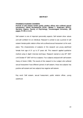 Susana, Fransisca (2007) Gambaran self esteem public relation officer perempuan yang mengalami pelecehan seksual. Studi di tempat hiburan billiars “X”. Skripsi thesis, Universitas Tarumanagara.
