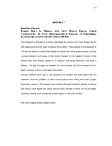Virginia, Agustina (2008) Coping stress pada perempuan yang menderita kanker payudara. Skripsi thesis, Universitas Tarumanagara.