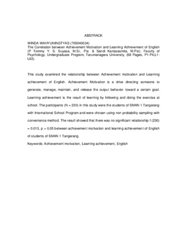 Wahyuningtyas, Winda (2008) Hubungan motivasi berprestasi dengan prestasi belajar bahasa Inggris (Studi pada SMAN 1 Tangerang). Skripsi thesis, Universitas Tarumanagara.